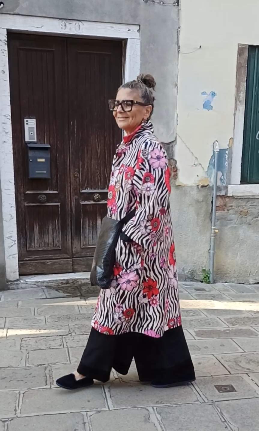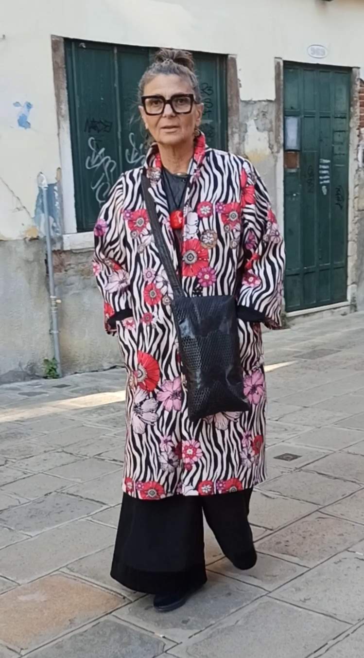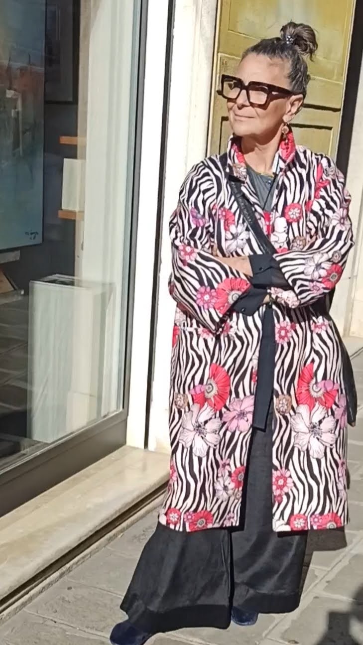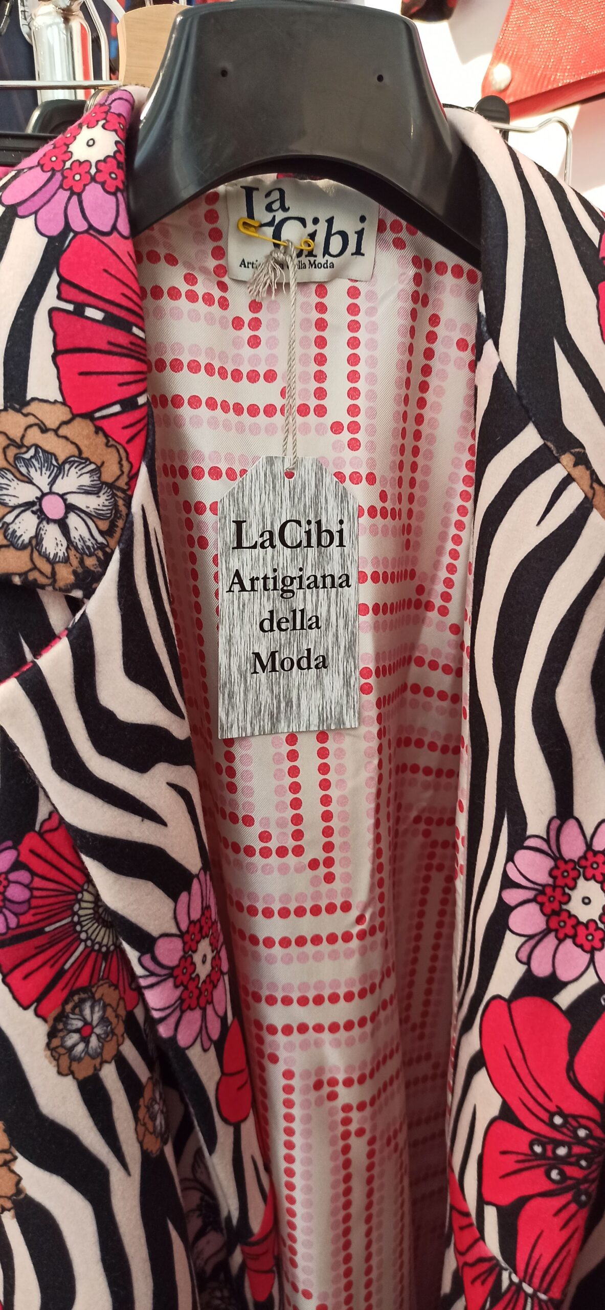Cappotto in panno di lana foderato con tssuto in viscosa a pois. Panno di lana in fantasia zebrata floreale, unico pezzo , capo unico